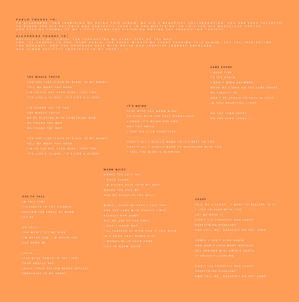 Other Stories, nacido de la colaboración entre Pablo Bolívar y Alexandra Savvidi, fusiona la elegancia del downtempo con la profundidad del deep house. A lo largo de sus ocho tracks, el álbum explora atmósferas envolventes, donde pianos delicados y las evocadoras voces de Alexandra se entrelazan con ritmos quebrados, creando una experiencia de escucha única. Programado para su lanzamiento en vinilo, este disco reúne lo mejor del recorrido conjunto del dúo y ofrece una combinación perfecta de introspección y energía sutil.